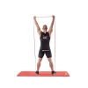 - Разведение рук с резинками над головой в положении стоя. В этом упражнении мы задействуем в основном дельтовидные и плечевые мышцы.
