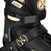 Корпус ботинка выполнен из прочного полиэтилена, который обеспечивает оптимальную жесткость в зоне лодыжки и высокий комфорт во время ношения. Алюминиевая рама, используемая в роликовой версии, отличается легкостью и стойкостью к механическим повреждениям, благодаря чему пользователь получает стабильность и точный контроль при катании.