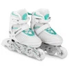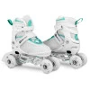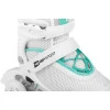 Интересным, очень практичным решением является возможность регулировки размера роликовых коньков в соответствии с длиной стопы (в диапазоне, заданном для конкретной модели). Вы можете легко изменить длину обуви – все, что вам нужно сделать, это нажать специальную кнопку в нижней части обуви и одновременно выдвинуть переднюю часть обуви, пока вы не достигнете желаемого размера. Благодаря этому в случае с детьми оборудование можно использовать в течение нескольких сезонов.