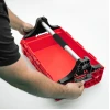 Каждая ручка соединяется с коробкой с помощью прочных полиамидных соединителей. Это уникальное решение позволяет удобно транспортировать инструменты и аксессуары одной рукой.