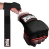 - Благодаря длинному хлопковому бинту перчатки не скользят во время нанесения ударов. Конструкция застежки на липучке помогает фиксировать запястье.