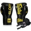Модель оснащена ремешком на липучке для надежной фиксации запястья и фиксатором большого пальца, который позволяет правильно сжимать кулак и обеспечивает максимальную защиту во время спаррингов и тренировок. Уникальные принты GLORY на одной перчатке и Fairtex на другой подчеркивают эксклюзивность этой модели.