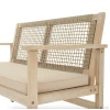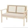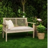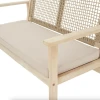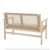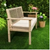 Скамейка для парка Teracina – это пример минималистической элегантности, где нет лишних деталей. Натуральный цвет древесины, аккуратное плетение спинки и нейтральная бежевая палитра создают образ покоя и стиля. Благодаря плотному плетению спинки, лавка смотрится изящно, но остается крепкой, а на подлокотниках вы удобно расположитесь во время отдыха.