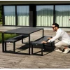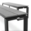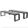 Каркас скамеек изготовлен из легкого, но очень прочного алюминия, что обеспечивает устойчивость к коррозии и позволяет легко перемещать мебель в соответствии с вашими потребностями. Сидение скамеек изготовлено из высококачественного полимерного материала, имитирующего натуральное дерево, но при этом не трескается, не тускнеет и не боится влаги. Рама выкрашена в элегантный черный матовый цвет.
