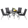 Долговечность и безопасность – ключевые принципы, на которых базируется выбор материалов для Chomik. Стальные профили с порошковым покрытием и серое закаленное стекло столешницы гарантируют длительный срок службы и безопасность при использовании. Особое внимание следует обратить на то, как материалы высокого качества – сталь с порошковым покрытием и серое закаленное стекло – не только обеспечивают долговечность и устойчивость к внешним воздействиям, но и придают мебели элегантность и современный вид. Текстильные сиденья обеспечивают дополнительный комфорт, делая ваш отдых еще более приятным. Универсальность этого набора не ограничивается только внешним видом, он также предлагает гибкость использования, поскольку мебель легко перемещать и адаптировать к разным сценариям использования.