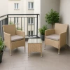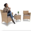 Основание комплекта изготовлено из прочной стали, которая обеспечивает всему набору надежную защиту от преждевременной коррозии и гарантирует длительный срок службы. Верхняя обивка, сделанная из добротного ротанга, прекрасно противостоит палящему солнцу, сильным дождям и любым другим погодным условиям. Также наружное покрытие хорошо справляется с загрязнениями и очень просто в уходе.