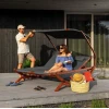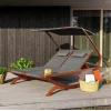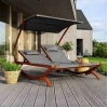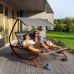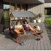 Наибольшее преимущество шезлонга Pionza – это то, что он создан для максимального комфорта двух людей, но с возможностью индивидуальной настройки. Каждый из двух независимых шезлонгов имеет собственную 3-уровневую регулировку спинки, поэтому вы можете расположиться так, как вам удобно: сидеть с книгой, полулежать для разговора или полностью разложиться для дневного сна. Особую роль в удобстве играет подвижный тент-капюшон, почти полностью вращающийся вокруг шезлонга. Благодаря этому вам больше не нужно передвигать тяжелую конструкцию, чтобы найти тень – достаточно просто изменить положение тента, подстраивая его под солнечный свет. Комплект дополняют мягкие подушки для головы, наполненные перламутровым хлопком, которые благодаря эластичным лентам надежно держатся на своем месте. А для прохладных вечеров добавляется уютный плед, чтобы вы могли наслаждаться теплом и уютом даже после заката.