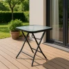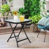 Конструкция стола изготовлена из стали с антикоррозионным покрытием, что гарантирует выносливость под открытым небом. Даже под влиянием солнца или влаги, уличная мебель Costway остается безупречной и служит долгие годы без потери внешнего вида. Компактный размер 46,5×46,5×47,5см делает этот стол идеальным решением для балкона, террасы, сада или патио. Он не займет много места, но обеспечит достаточно поверхности для ваших любимых вещей – напитков, закусок или цветочных композиций.