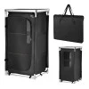 Спецификация: Материал: 600D оксфорд, ПВХ, алюминий, МДФ Размеры: Высота: 105 см. Ширина: 62 см. Глубина: 48 см. Каркас: алюминиевый профиль диам. 19 мм Нескользящие ножки: да Количество полок: 3 Столик для размещения сверху шкафа: да Сумка для переноски: да Вес изделия: 4,5 кг Примечания: Не предназначен для коммерческого использования Гарантия 24 месяца