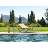 Спинка шезлонга имеет 5 позиций угла наклона. Допустимая нагрузка – до 150 кг. Вставка сделана из полиэфирных нитей с покрытием из ПВХ в виде сетки (сетку можно изменять). Сетка Serge Ferrari.