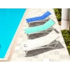 Шезлонг без подлокотников. Материал каркаса: полипропилен с синтетической вставкой. Вставка сделана из полиэфирных нитей с покрытием из ПВХ в виде сетки (сетку можно изменять). Прочный, легкий, устойчив к ударам, изгибам, влаге, химическим соединениям и полностью антистатичен. Шезлонг штабелируется (состоит 1 на 1). Имеет не скользящие ножки. Имеет матовую поверхность. Шезлонг устойчив к ультрафиолетовому излучению.