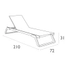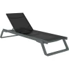 Спинка шезлонга имеет 5 позиций угла наклона. Допустимая нагрузка – до 150 кг. Вставка сделана из полиэфирных нитей с покрытием из ПВХ в виде сетки (сетку можно изменять). Сетка Serge Ferrari.