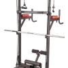 К поручням добавлен стальной гриф, который можно использовать разными способами в сочетании со скамейкой или как отдельный прибор. Он также позволяет выполнять упражнения для ног, что делает поручни пригодными для тренировки всего тела.
