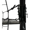 Каркас изготовлен из стальных труб диаметром 32 мм с порошковым покрытием. Прочная сетка с ячейками 4,5 x 4,5 см крепится с помощью резинок, обеспечивая тихий и четкий отскок. Конструкция выдерживает активную нагрузку и влияние погодных условий, что делает ее идеальной для использования на открытом воздухе.