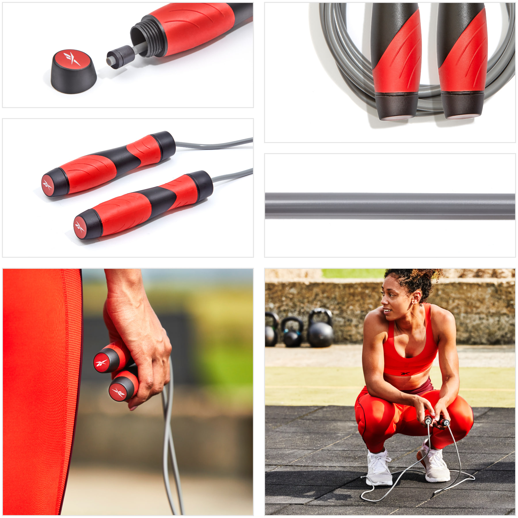 Скакалка Reebok Premium поможет укрепить мускулы и улучшить физическую форму. Прочный материал означает, что он будет долгое время оставаться без следов ношения. Специальный механизм позволяет разместить в ручках небольшие утяжелители весом 150 г. Это позволит вам интенсифицировать тренировки и выйти на более высокий уровень физической подготовки.
