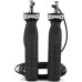 Характерной особенностью скакалки является шарикоподшипное крепление скакалки к ручке. Благодаря такому решению скакалка не подвергается скручиванию при прыжках, вращается очень плавно, что позволяет выполнять упражнения на высокой скорости и выполнять больше поворотов за один скачок. Практическая регулировка длины веревки – с помощью нажимных винтов – позволяет точно отрегулировать веревочку под ваш рост. Стальной трос имеет защитное покрытие, благодаря которому он не растирается и не стирается при контакте с землей.