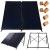 Конструкция содержит два плоских солнечных коллектора размером 200 x 125 x 8 см (площадь 2x2,5 м²). Каркас можно установить как на земле, так и на наклонной крыше, сняв задние ножки.