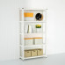 Стеллаж занимает мало места, но благодаря полкам в нем много места для хранения.