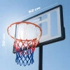 Прозрачная PVC-таблица размером 82×59 см придает корзине профессиональный вид и обеспечивает качественное отражение мяча. Металлический обруч диаметром 38 см изготовлен из стали толщиной 16 мм, что гарантирует прочность и долговечность даже во время интенсивных тренировок.