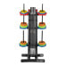 Стойка оснащена шестью штырями для дисков, позволяющими удобно размещать обременение разного веса. Кроме того, она имеет специальное место для штанги, благодаря чему все оборудование находится в одном месте и легко доступно во время тренировки.