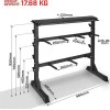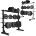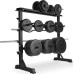Эта профессиональная многоуровневая стойка для гантелей и весов, изготовленная из прочной стали, предлагает много места для гантелей, брусьев и штанг. Прочная стальная рама выдерживает до 300 кг и является безопасным местом хранения гантелей и дисков. Противоскользящие ножки предотвращают нежелательные движения. Стойка имеет разные угловые кронштейны для погрузочных колес и гантелей. Примечание: груз не входит в комплект, продается только подставка. Технические данные: прибл см Расстояние между верхними сопротивлениями: 26,5 см Расстояние между нижними сопротивлениями: 36,5 см Высота ручек штанги: 22,5 см, 40,5 см, 58,5 см, 76, 5 см Стальная рама с порошковым покрытием пластиковые (резиновый) размер: 103,5 x 44,5 x 11 см для сборки Комплектация: 1 стойка для штанги