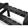 Спортивное оборудование оснащено прочной стальной рамой. Конструкция подразумевает компактную фиксацию 10 пар гантелей.
