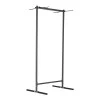 Технические характеристики: Высота: 173 см Ширина: 80 см Глубина: 61,5 см Длина крючка: 24 см Количество крючков: 4 Максимальное расстояние между крючками: 72 см Диаметр рамы: 2,4 см Материал: сталь Максимальная нагрузка: 36 кг Вес: 1 бытового использования Гарантия 12 месяцев для коммерческого использования