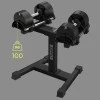 Стойка разработана для размещения двух наборов регулируемых гантелей весом до 36 кг или 24 кг, что делает ее чрезвычайно практичной и универсальной.