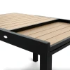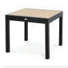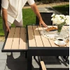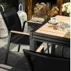 Прямые линии, сдержанная цветовая палитра и стильный контраст черного и бежевого делают Comlo универсальным дополнением как для современного, так и для классического экстерьера. Каркас стола выполнен из антикоррозионного алюминия, не боящегося влаги, ультрафиолета и механических повреждений. Алюминиевая садовая мебель более мобильна и легче передвигается, что особенно важно в случае с большими моделями, такими как обеденные столы.