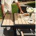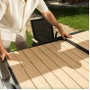 Прямоугольная столешница изготовлена из бежевого поливуда, сочетает в себе натуральный вид древесины и прочность пластика. Его гладкая поверхность не нуждается в сезонном уходе и не впитывает грязь, поэтому ее легко поддерживать в чистоте. Столешница не портится, не трескается и не тускнеет под влиянием ультрафиолетовых лучей, дождя и перепадов температур, поэтому вы сможете наслаждаться ее эстетическим видом в течение многих сезонов.