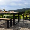 Представьте себе летний вечер в вашем саду или на террасе, где вы собираетесь с родными или друзьями за стильным и удобным обеденным столом. Прямоугольный стол от Di Volio - это идеальное решение для создания функционального и стильного пространства для отдыха на свежем воздухе. Сочетание минималистического современного дизайна с традиционными элементами деревенской мебели делает его универсальным выбором, подходящим как для современного, так и классического стиля оформления. Его легкая, но крепкая алюминиевая рама обеспечивает устойчивость и долговечность, тогда как столешница из полиуретанового дерева прекрасно имитирует натуральное дерево, но при этом намного прочнее и устойчивее к погодным условиям. Благодаря этому Giovo не боится дождя, мороза или интенсивного солнца, сохраняя свой первозданный вид на протяжении многих лет. Большая столешница предоставляет достаточно места для совместных трапез, вечерних встреч или отдыха за чашечкой кофе. А если вы хотите создать гармоничный садовый комплект, в нашем интернет магазине вы найдете скамейку Pisa, которая идеально дополнит стол Giovo. Выбирайте функциональность, стиль и долговечность – создавайте уютное пространство вместе с Di Volio!