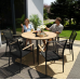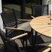 Круглая столешница изготовлена из чрезвычайно прочного поливуда, устойчивого к разнообразным погодным условиям, которым постоянно подвергается садовая мебель - дождю, влаге, высоким и низким температурам, интенсивному солнечному свету. Дополнительным преимуществом поливуда является его внешний вид, идеально имитирующий естественную структуру древесины. Чтобы выделить визуальную привлекательность материала, панели из полиуретанового дерева скомпонованы в декоративную композицию с круглым элементом посередине.
