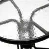 Модель B-60 может похвастаться своей долговечностью, ведь металлические части изделия изготовлены из стали. Устойчивость к коррозии и сопротивление погодным изменениям обеспечена. Кроме этого, материал окрашен выносливой краской, что предполагает использование столика под открытым небом. Черный цвет каркаса ярко сочетается со стеклянной поверхностью. Изюминка состоит в его важной части, поскольку стекло наделено эффектом имитации волны воды. Конечно, поверхность идеально ровная и все вещи на ней будут стоять или лежать ровно, а вот внешний вид действительно завораживает. Именно эта черта чаще всего склоняет пользователей к решению купить стол стеклянный садовый.