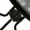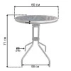 Высота и диаметр изделия выбраны таким образом, чтобы столиком было удобно пользоваться сидящими на стульях, в креслах, на скамейках и даже лежащими на шезлонге. Заказать стеклянный уличный стол можно и для повседневного использования, для завтраков или обедов на свежем воздухе. Ножки изделия вниз раскинуты достаточно широко для хорошей устойчивости, однако ближе к центру каркас существенно сужается. Колена пользователей не будут все время сталкиваться с неудобствами из-за стальных труб. Для подчеркивания стиля и повышения надежности стеклянной части верхушка обрамлена металлическим ободком. Лучше понять параметры и особенности изделия помогут следующие технические данные: