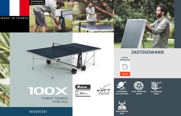Если вы ищете стол, который можно использовать как в помещении, так и на улице, выберите 100X. Это отличный выбор для начала семейного происшествия в настольном теннисе. Эксперты из Корнео, Франция, гарантируют не менее 10 лет удовольствия.