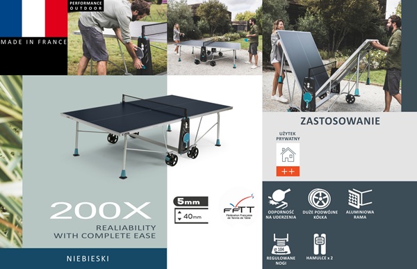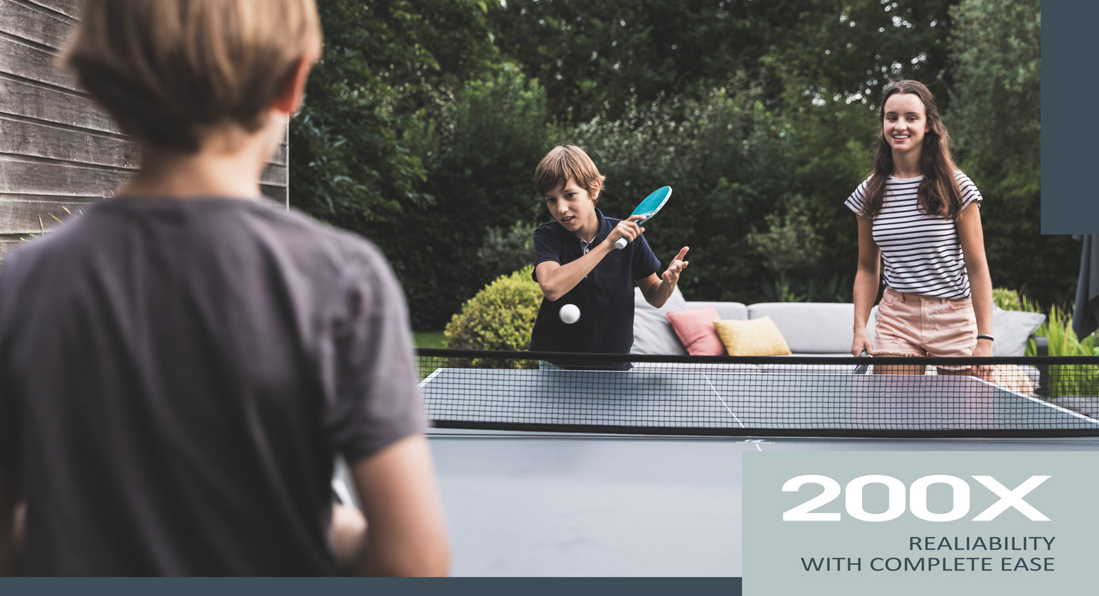 Если вы ищете стол, который можно использовать как в помещении, так и на улице, выберите 200X. Это отличный выбор для начала семейного происшествия в настольном теннисе. Эксперты из Корнийо, Франция, гарантируют не менее 10 лет удовольствия.