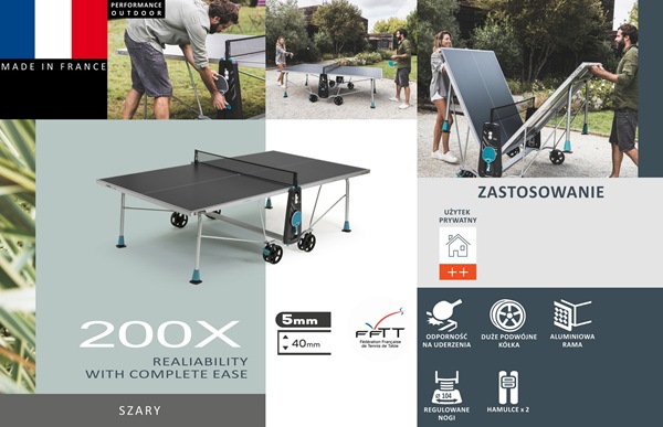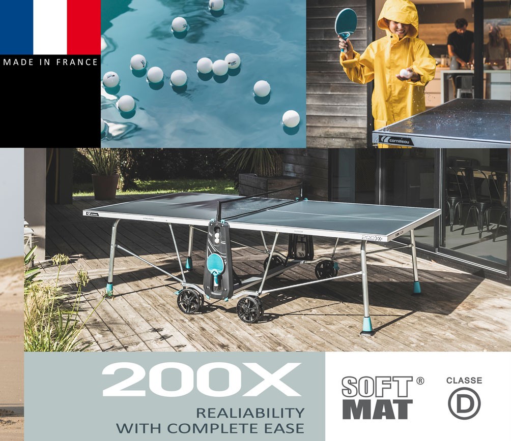 Если вы ищете стол, который можно использовать как в помещении, так и на улице, выберите 200X. Это отличный выбор для начала семейного происшествия в настольном теннисе. Эксперты из Корнийо, Франция, гарантируют не менее 10 лет удовольствия.
