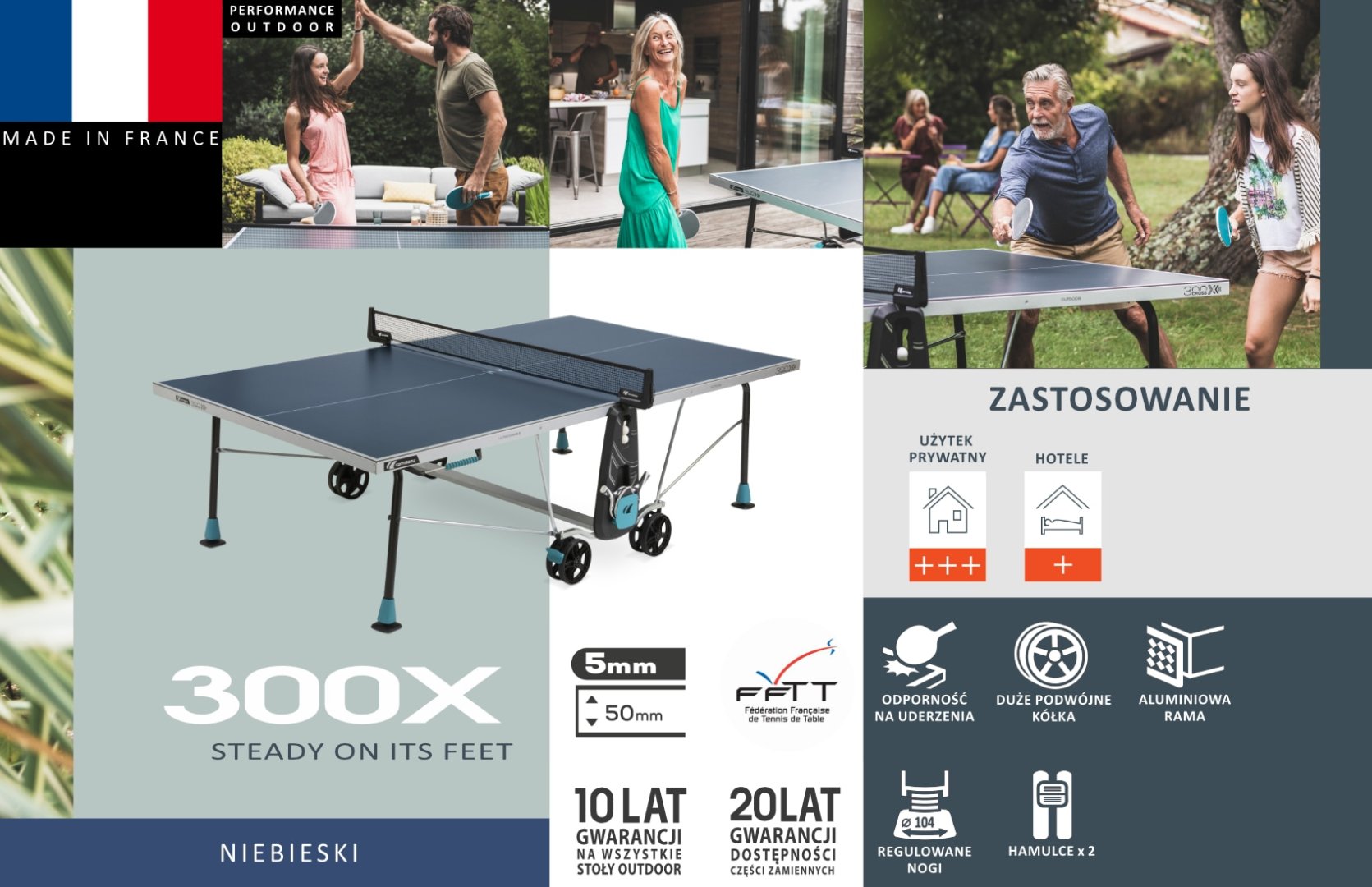 Если вы ищете стол, который можно использовать как в помещении, так и на улице, выберите 300X. Это отличный выбор для начала семейного происшествия в настольном теннисе. Эксперты из Корнео, Франция, гарантируют не менее 10 лет удовольствия.