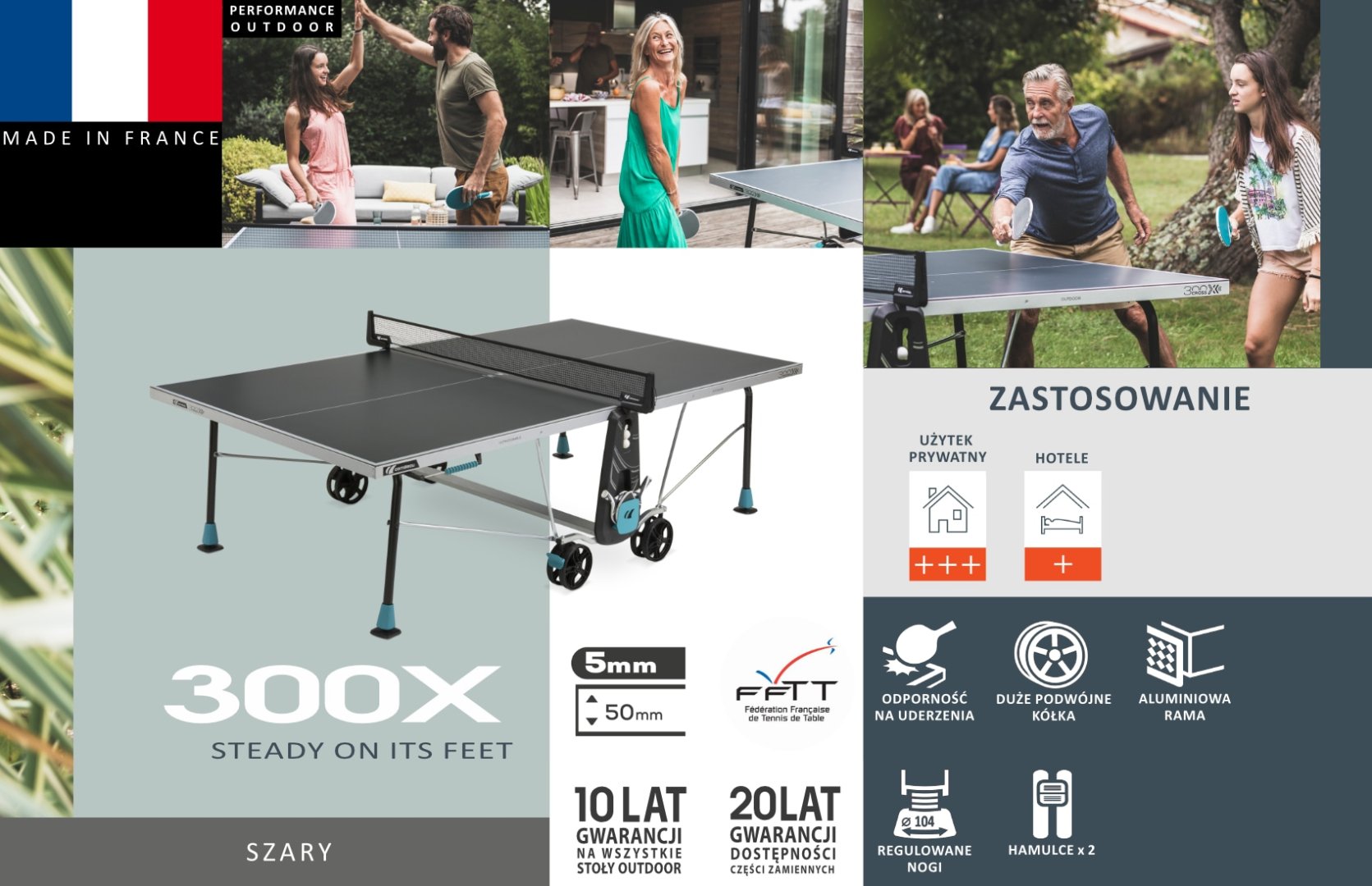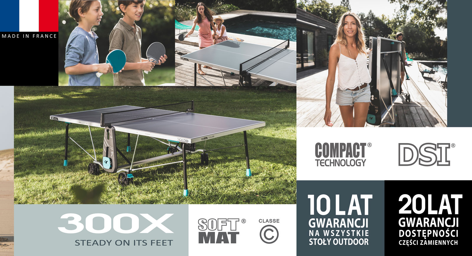 Если вы ищете стол, который можно использовать как в помещении, так и на улице, выберите 300X. Это отличный выбор для начала семейного происшествия в настольном теннисе. Эксперты из Корнео, Франция, гарантируют не менее 10 лет удовольствия.