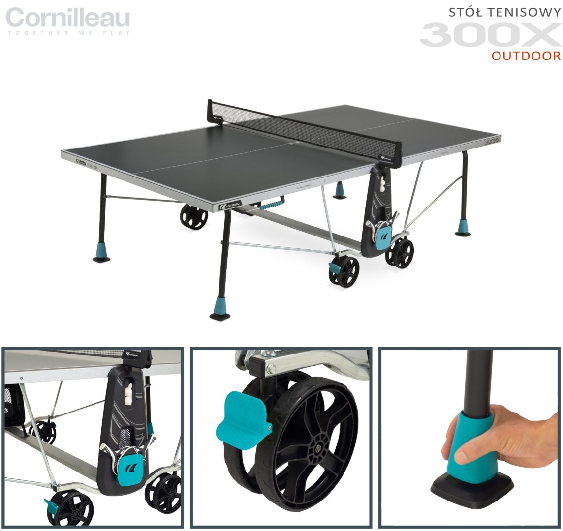 Теннисный стол Cornilleau 300X от Cornilleau – это модель, разработанная для использования на открытом воздухе. Он устойчив к разным погодным условиям, поэтому вы можете безопасно хранить его на улице. Стол будет прекрасно работать круглый год; вы сами выбираете, когда вам захочется играть, вне зависимости от погоды. Это идеальный выбор для всей семьи. Благодаря двойной системе безопасности DSI, двойным колесам и мощным тормозам с ним сможет справиться каждый.