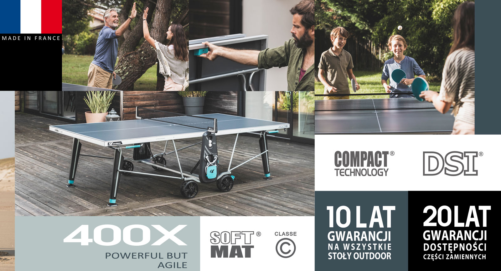 Стол для тенниса Cornilleau 400X – это топовая модель серии Sport для активного отдыха. Это идеальный выбор для всей семьи. Благодаря двойной системе безопасности DSI, двойным колесам и мощным тормозам, каждый может легко им управлять. Стол устойчив к погодным условиям и идеально подходит для сада или патио.