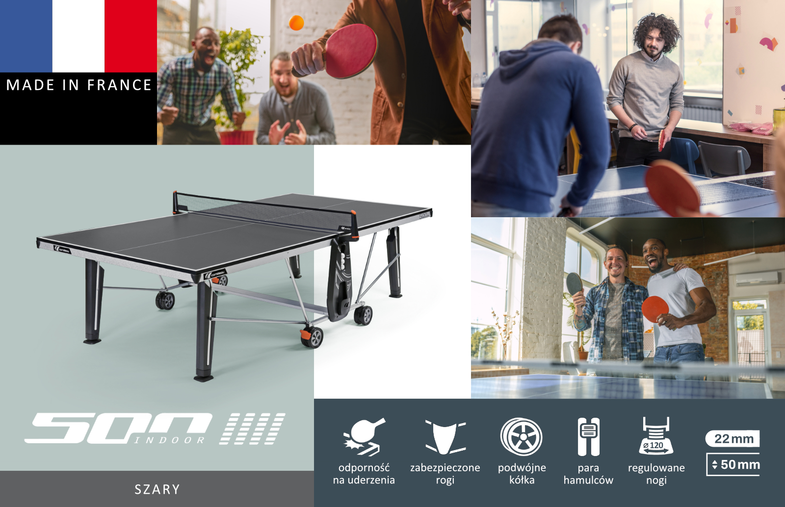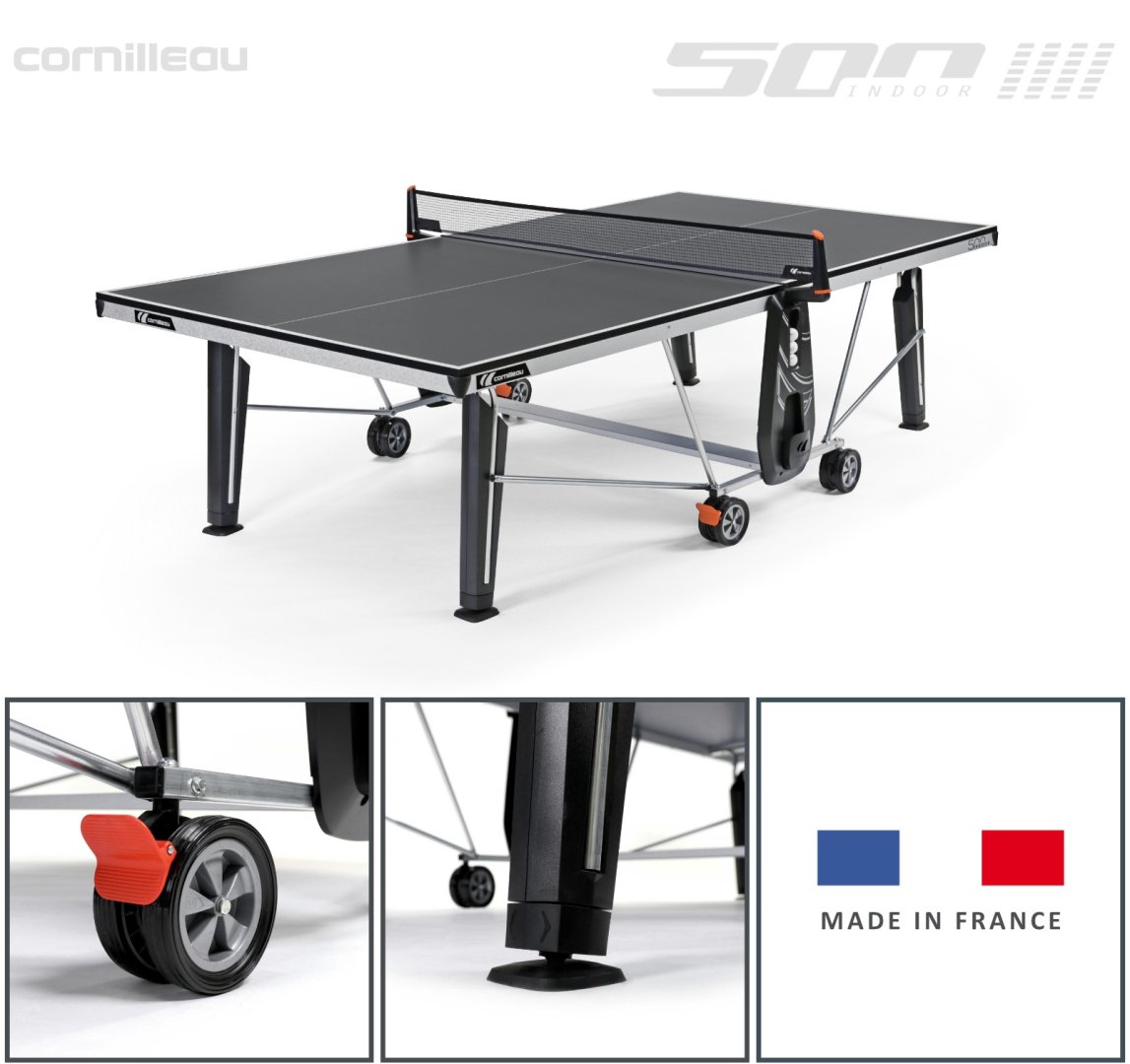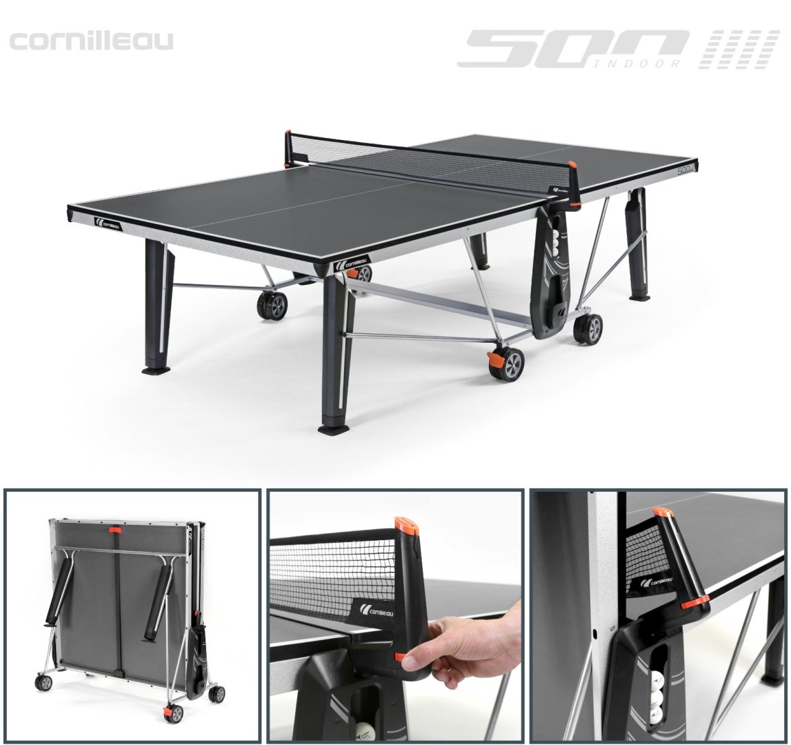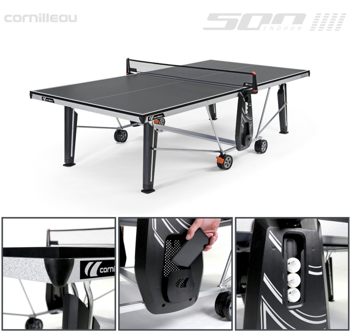 Стол Cornilleau 500 INDOOR сочетает в себе все лучшие характеристики и преимущества столов Cornilleau. Он предназначен для интенсивного использования. Стол 500 INDOOR позволит вам играть в множество игр с семьей и друзьями. Качество игры не имеет себе равных среди других столов, а отличные параметры и характеристики стола позволят вам быстро прогрессировать. Ручка для транспортировки позволяет легко поднимать стол и избегать препятствий, таких как лестница или пороги. Устройство для подачи мячей, расположенное рядом с игроком, гарантирует, что мячи всегда будут под рукой.