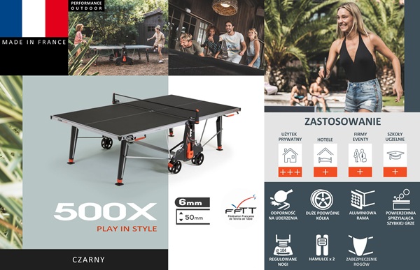 Теннисный стол Cornilleau 500X – это модель начального уровня в серии Performance для внешнего использования. Он позволяет вам полностью сосредоточиться на том, зачем он был разработан: наслаждаться игрой. Стол устойчив к погодным условиям и идеально подходит для сада или патио.