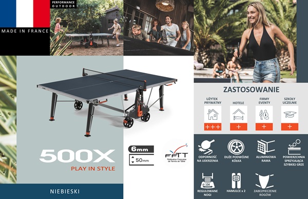 Динамический облик 500X сочетает в себе класс и современность. Дизайнеры тщательно разработали новую коллекцию столов с несколькими ключевыми особенностями, основываясь на отзывах клиентов и собственном 50-летнем опыте. Столешница, держатели для напитков, защита углов и полностью выдвижная сетка в сложенном виде – это детали, выделяющие этот стол среди конкурентов. Эксперты из Корнео, Франция, гарантируют не менее 10 лет удовольствия.