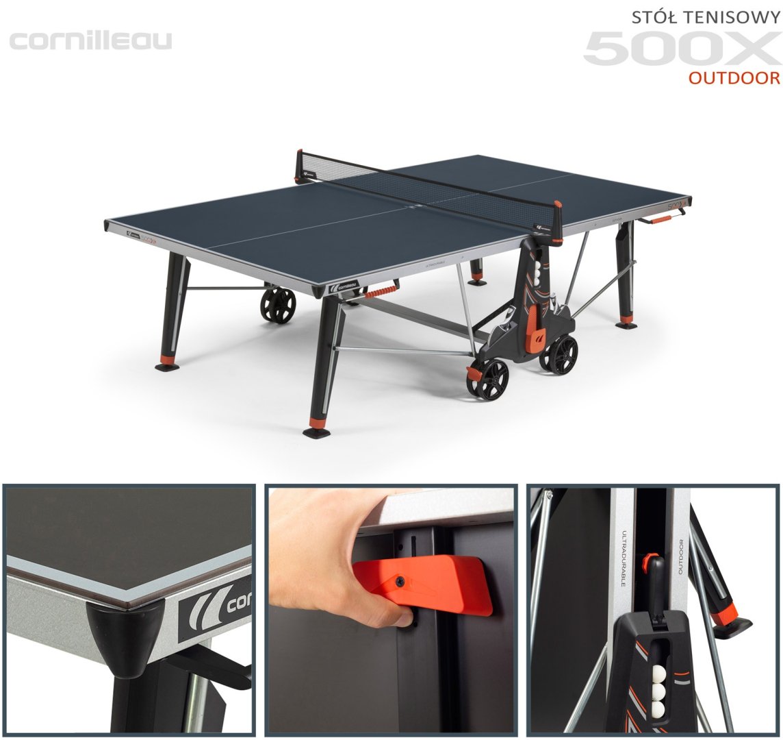 Теннисный стол Cornilleau 500X – это модель начального уровня в серии Performance для внешнего использования. Он позволяет вам полностью сосредоточиться на том, зачем он был разработан: наслаждаться игрой. Стол устойчив к погодным условиям и идеально подходит для сада или патио.