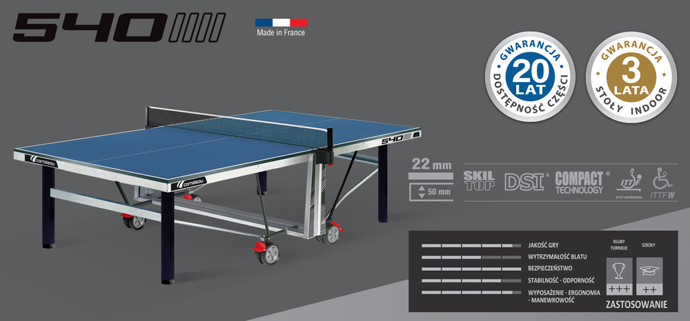 Стол 540 ITTF, предлагающий отличное соотношение цены и качества, идеально подходит для игры в высшей лиге за небольшие деньги. Благодаря столешнице толщиной 22 мм и покрытию SKILLTOP гарантирована надлежащая скорость и качество ударов. Этот стол очень рекомендован ITTF как клубный стол.