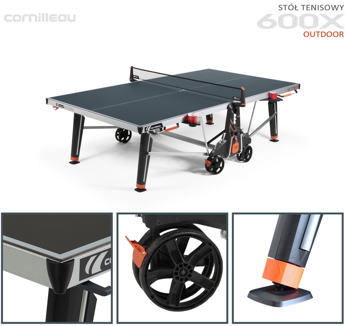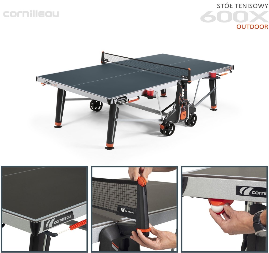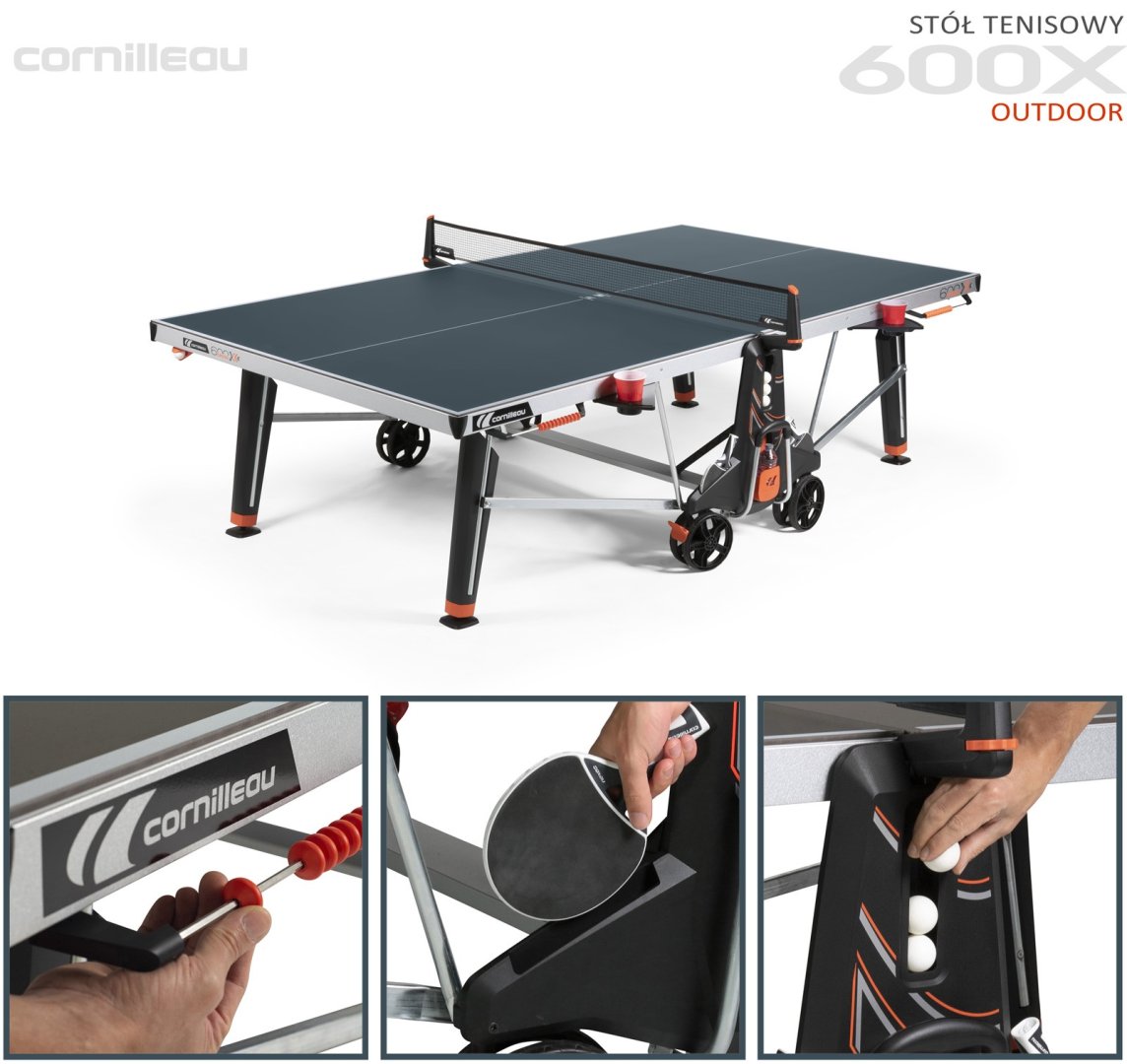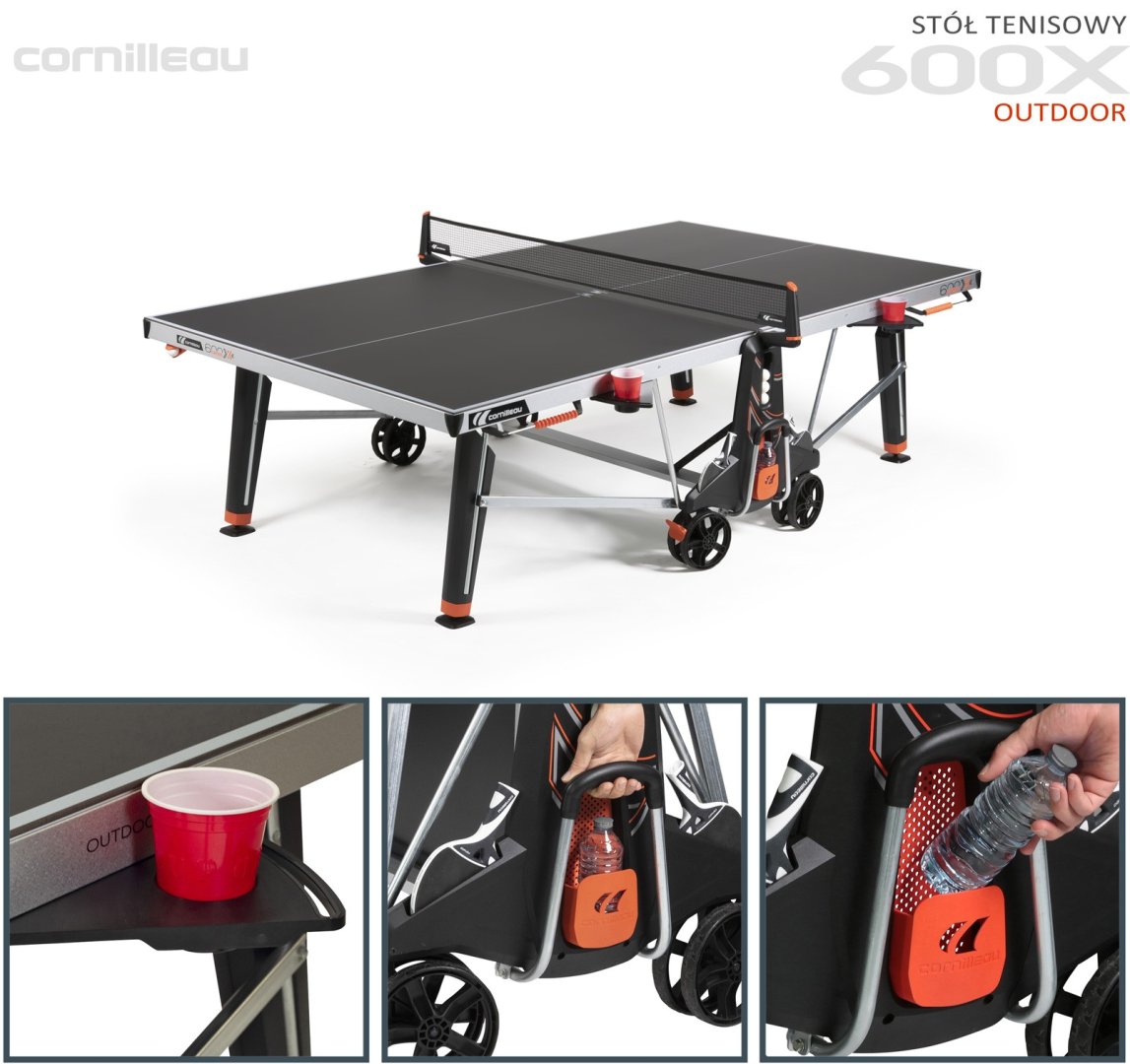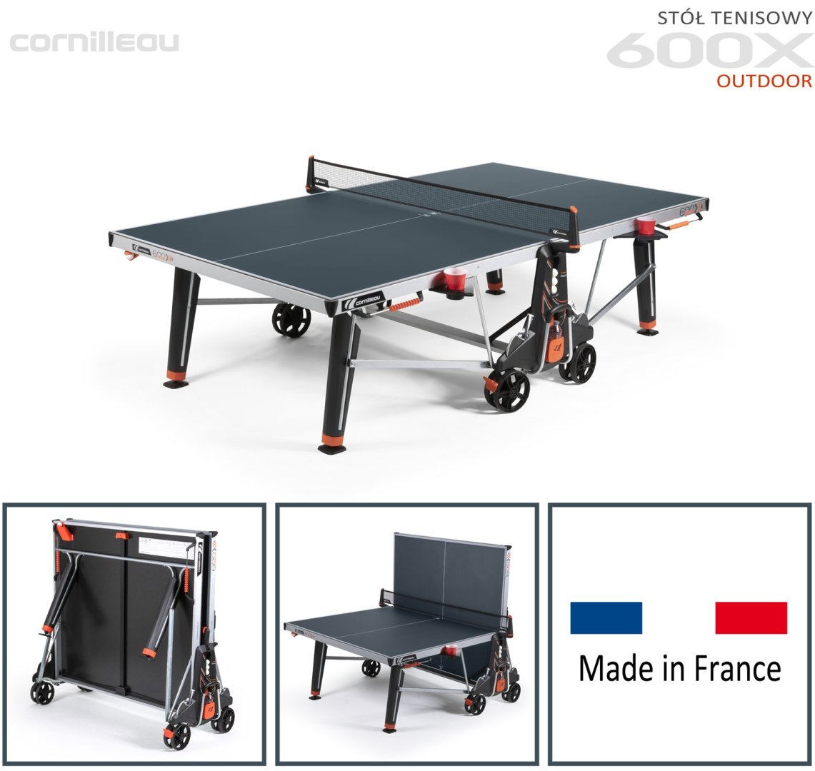Модель 600X Cornilleau была разработана, чтобы дополнить любой интерьер или садовый декор. Она совмещает в себе класс, элегантность и современность. Дизайнеры тщательно разработали новую коллекцию столов с несколькими важными дополнениями, основываясь на отзывах клиентов и собственном 50-летнем опыте. Столешница, подставки для напитков, защита углов и полностью выдвижная сетка в сложенном виде – это детали, отличающие этот стол от других. Эксперты из Корнео, Франция, гарантируют не менее 10 лет удовольствия.