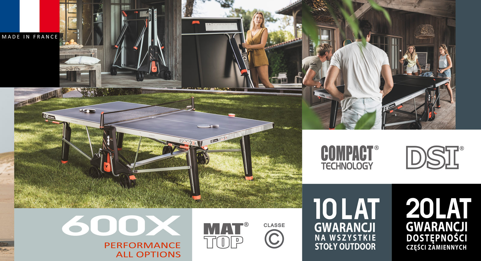 Стол теннисный 600X для улицы предлагает поистине чемпионский уровень игры в комфорте вашего дома. Инновационные технологии производства обеспечивают игровой опыт, подобный профессиональным столам.