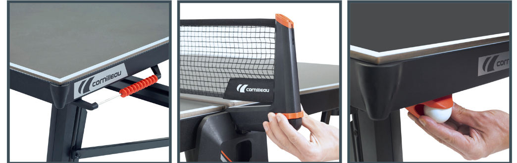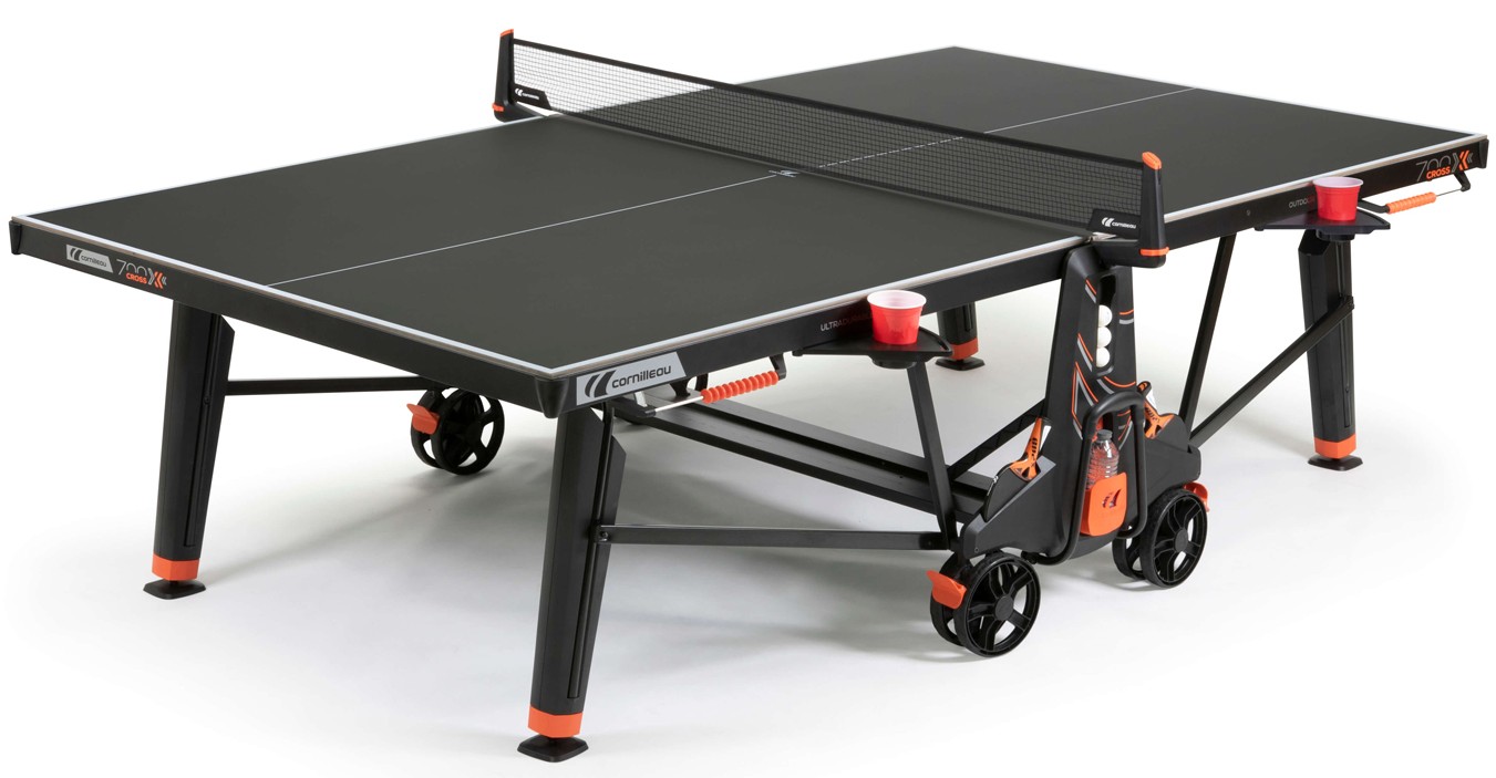 Черный стол с оранжевой отделкой сочетает в себе класс, элегантность и современность. Внимание к деталям и поразительный уникальный дизайн стола 700X создадут новое измерение игры в настольный теннис и придадут экстравагантности дизайну интерьера. Дизайнеры Cornilleau позаботились о мельчайших деталях, добавив несколько важных дополнений в новую коллекцию столов, опираясь на отзывы клиентов и собственный 50-летний опыт. Стойка, подставки для напитков, защита углов стола или полностью выдвижная сетка в сложенном состоянии – это детали, выделяющие стол среди других. Эксперты из Корнильо, Франция, гарантируют не менее 10 лет удовольствия.
