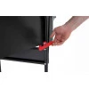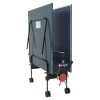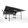 Стол оборудован простой системой блокировки (система крючков), благодаря которой быстро трансформируется в компактное положение. Возможность сборки только одной половины позволяет тренироваться самостоятельно, отрабатывая удары и рефлексы. Модель оснащена четырьмя сдвоенными колесами диаметром 125 мм, из которых два – поворотные, что значительно облегчает транспортировку. Для удобства предусмотрены держатели для ракеток и мячей с обеих сторон.